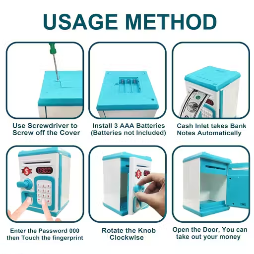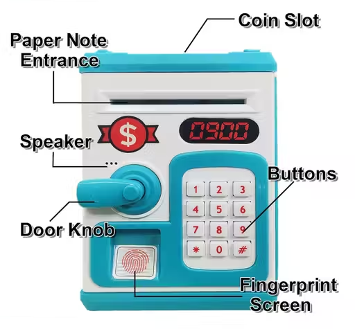 The Blue ATM Piggy Bank helps kids learn saving through an interactive ATM-style experience (password protection and automatic cash-intake). With secure storage and fun operation, it’s a gift kids love using daily.