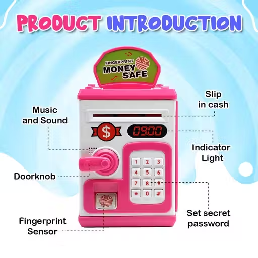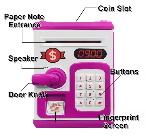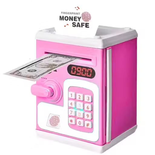This Pink ATM Piggy Bank gives kids a real ATM experience with password protection and automatic cash-intake. It makes saving fun, interactive, and secure.